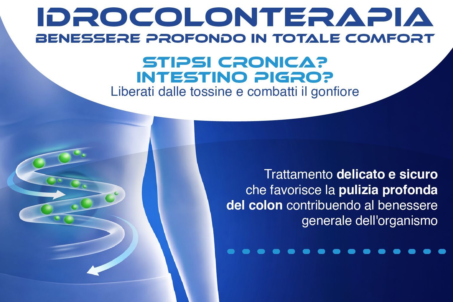 Questo trattamento favorisce l’eliminazione di tossine e scorie accumulate nell’intestino e può contribuire a contrastare disturbi come gonfiore addominale, senso di pesantezza e stanchezza, aiutando a ritrovare una sensazione di leggerezza e benessere generale.